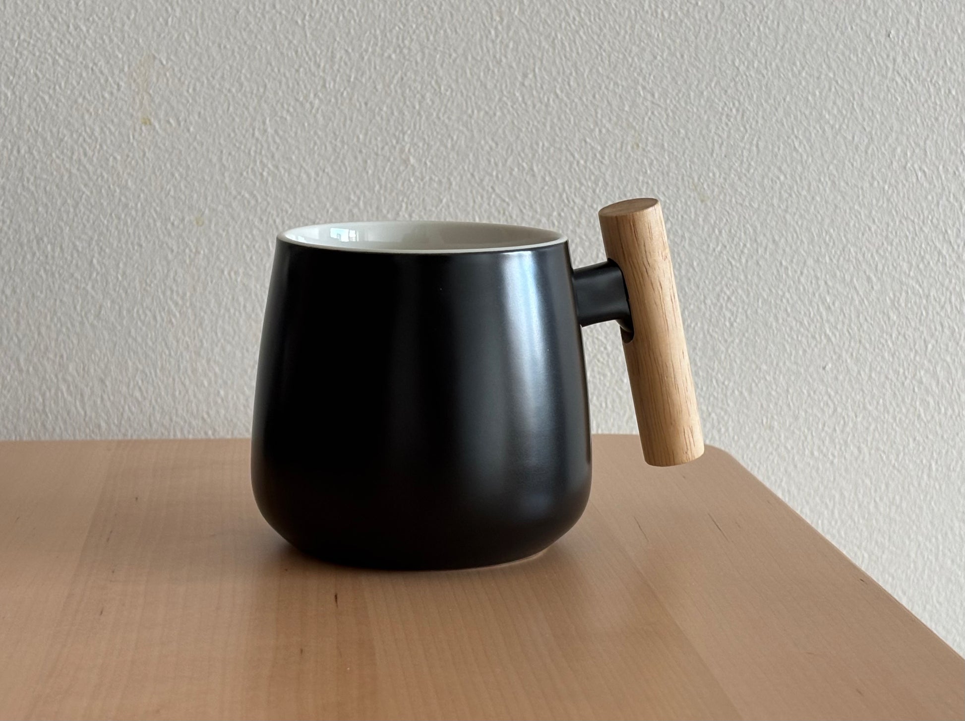 Perfect for coffee, tea, or hot chocolate, this minimalist mug is both functional and stylish — ideal for home offices, studios, or as a thoughtful gift. The matching wooden lid and spoon make it easy to stir and cover your drink in one elegant set.