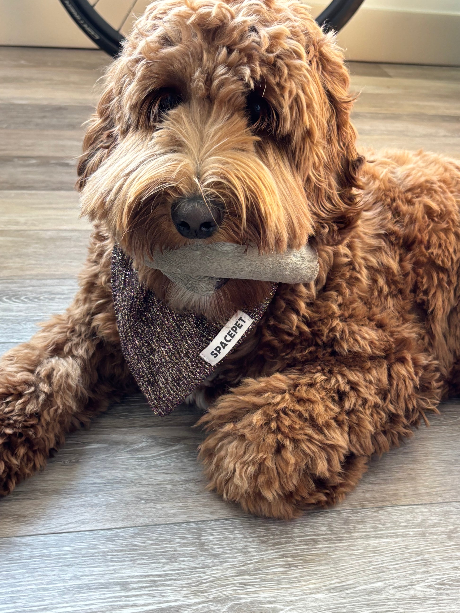 Handmade with soft, breathable fabric, each bandana slips easily onto your dog’s collar for a secure fit — no tying needed. The durable stitching ensures long-lasting use, while the lightweight material keeps your pet comfortable during walks, park days, or photoshoots. Its sleek, space-inspired design adds a fun and modern touch to any wardrobe.