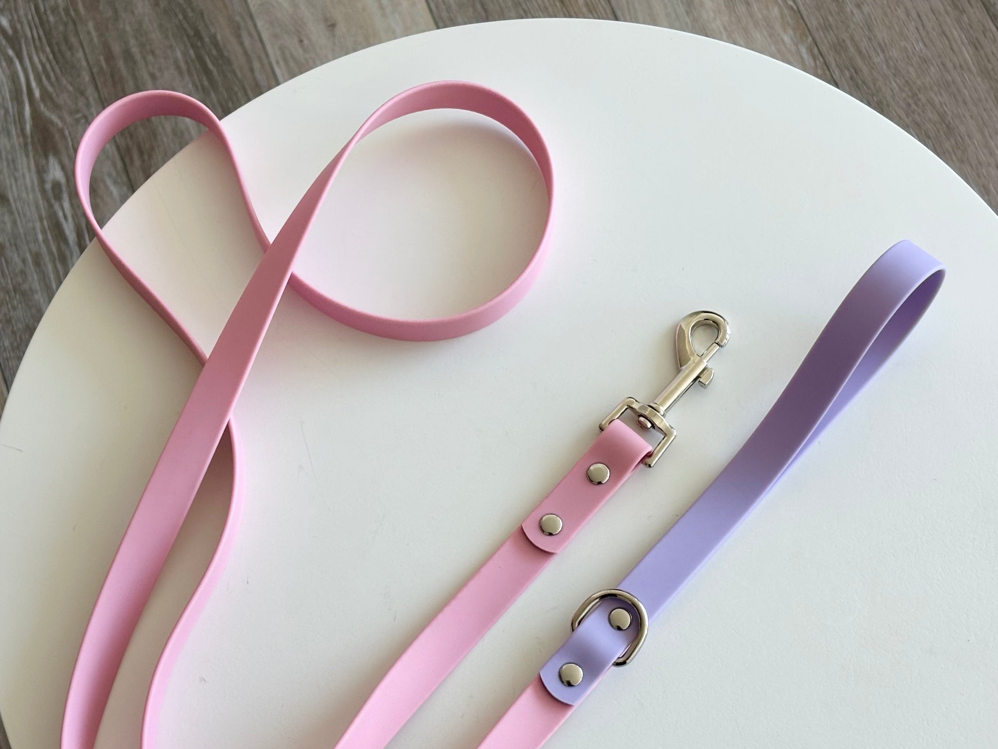 Crafted from durable, waterproof PVC-coated webbing, these leashes are built for both function and style. They’re soft to the touch, flexible for comfort, and easy to clean — perfect for every stroll through rain, mud, or stardust.
